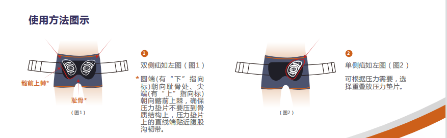 1、硅膠材質(zhì):柔軟,有良好的腹壁順應(yīng)性,不易變形,使得壓力更加精確的覆蓋腹股溝區(qū)域