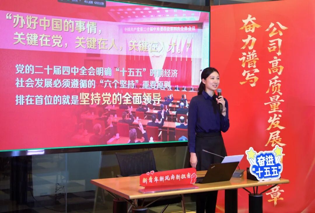 理論闡釋“見深度”,在精學細悟中把握核心要義。宣講員們緊扣全會提出的新思想、新論斷、新部署,精心選題、深入闡釋,通過原原本本學原文,深入解讀戰略部署的深刻內涵與實踐要求,以扎實的理論功底確保宣講有深度。實踐轉化“求效度”,在知行合一中破解發展難題。結合公司國際業務三年登高行動,解讀“積極擴大自主開放”的戰略部署;聚焦“持之以恒推進全面從嚴治黨”戰略部署,探討如何以高質量黨建引領和推動高質量發展,等等。他們堅持用“小切口”講透“大道理”,在聯系實際中找準行動方向,切實把學習成果轉化為推動公司高質量發展的實干成效。形式載體“增鮮度”,在守正創新中彰顯青春風采。在公司“紅色直播間”、在業務一線、在項目現場,青年宣講員們運用短視頻、PPT等“接力”宣講。2個月共開展30余場宣講,通過“短、實、新、活”的宣講模式,講理論、談體會、亮擔當,打通理論傳播“最后一公里”,有效推動黨建工作與業務實踐同向發力、深度融合。